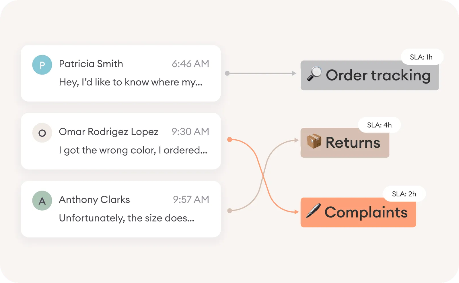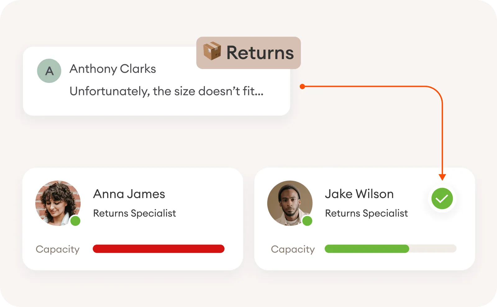 Smartly manage tickets by subject, intent, customer profile, and more. Stop reassignments and instantly get customers to the right team the first time.