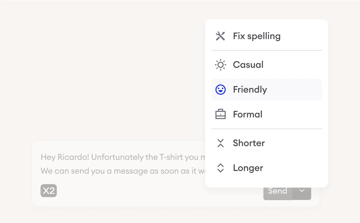 Instantly check spelling, improve grammar, and convert bullet points into engaging messages that embrace your brand style and tone.