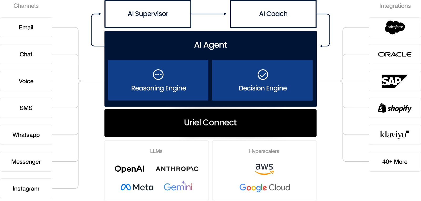 Connect to every system and every channel—email, chat, voice, social, and more. Uriel plugs into your tech stack, pulling context and pushing actions seamlessly across your customer journey.